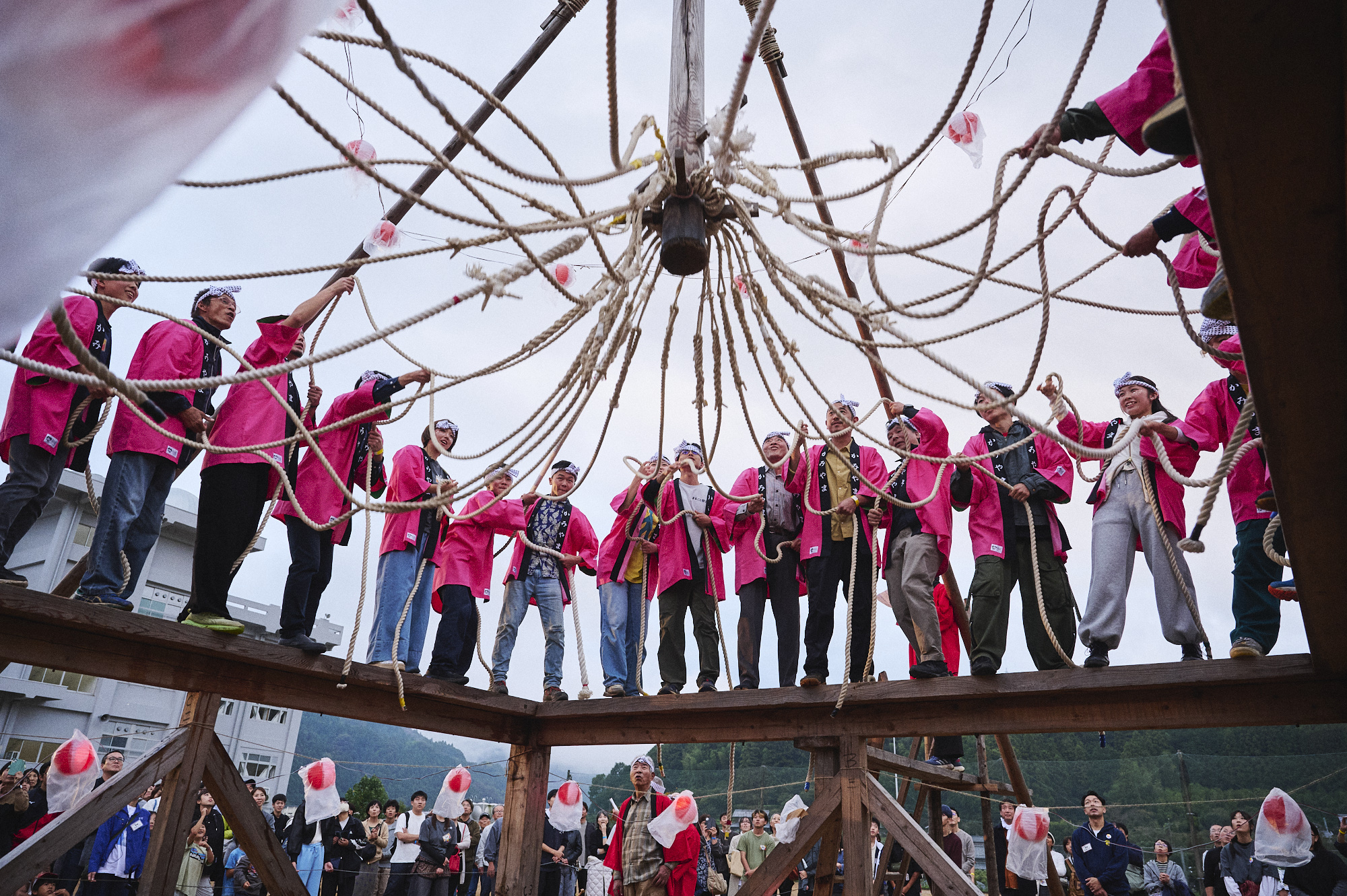 神山町の地域の方と再現した伝統行事「棒搗き」。練習の成果もあり高く棒が上がりと歓声が湧き上がりました。