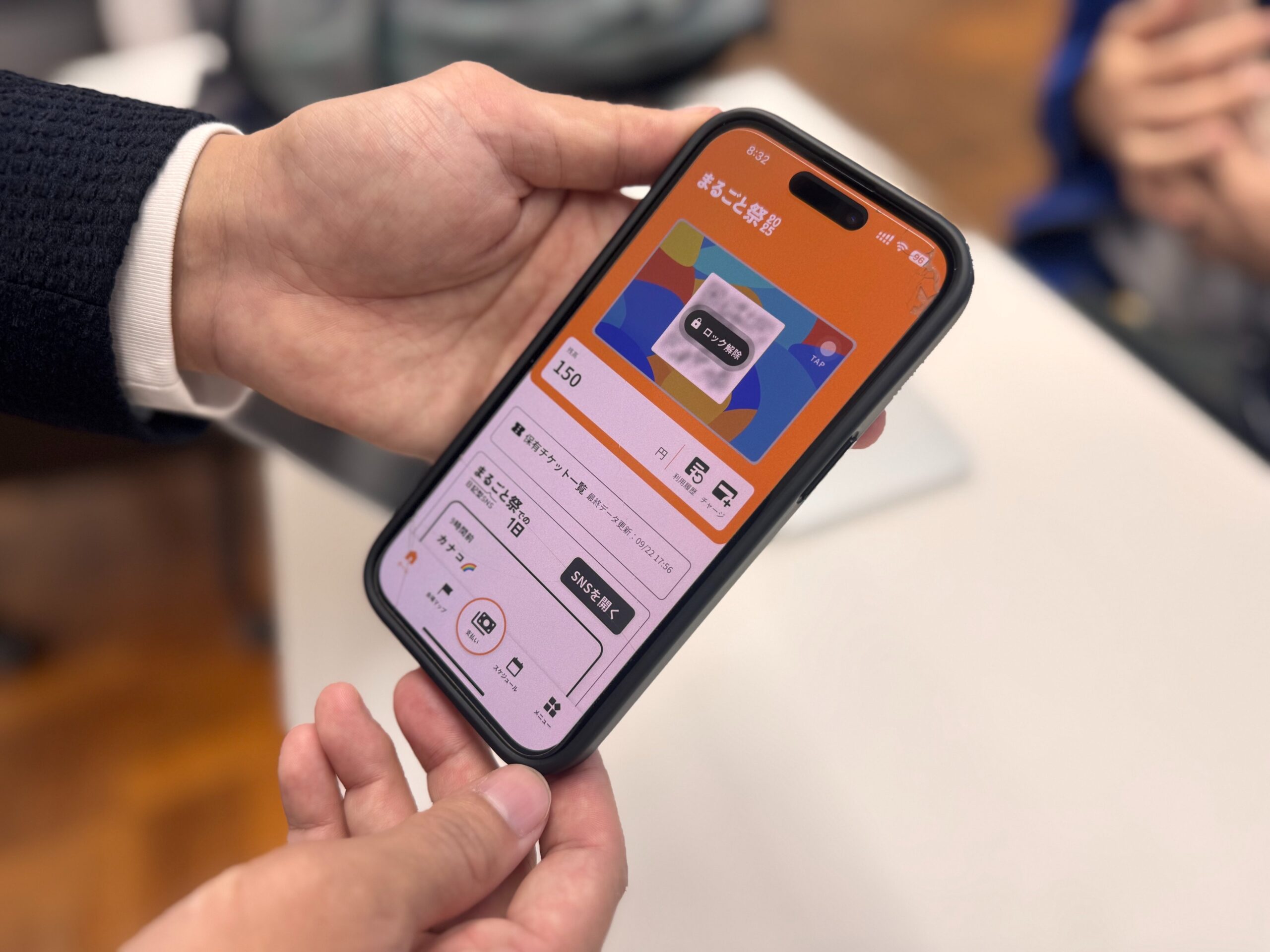 学生が開発した「まるごと祭専用アプリ」をご活用いただきました。AIで15歳に若返る学生証機能、会場マップ、物販、飲食などのキャッシュレス決済、体験コンテンツの予約など「テクノロジーとデザイン」の力をその手で感じていただきました。