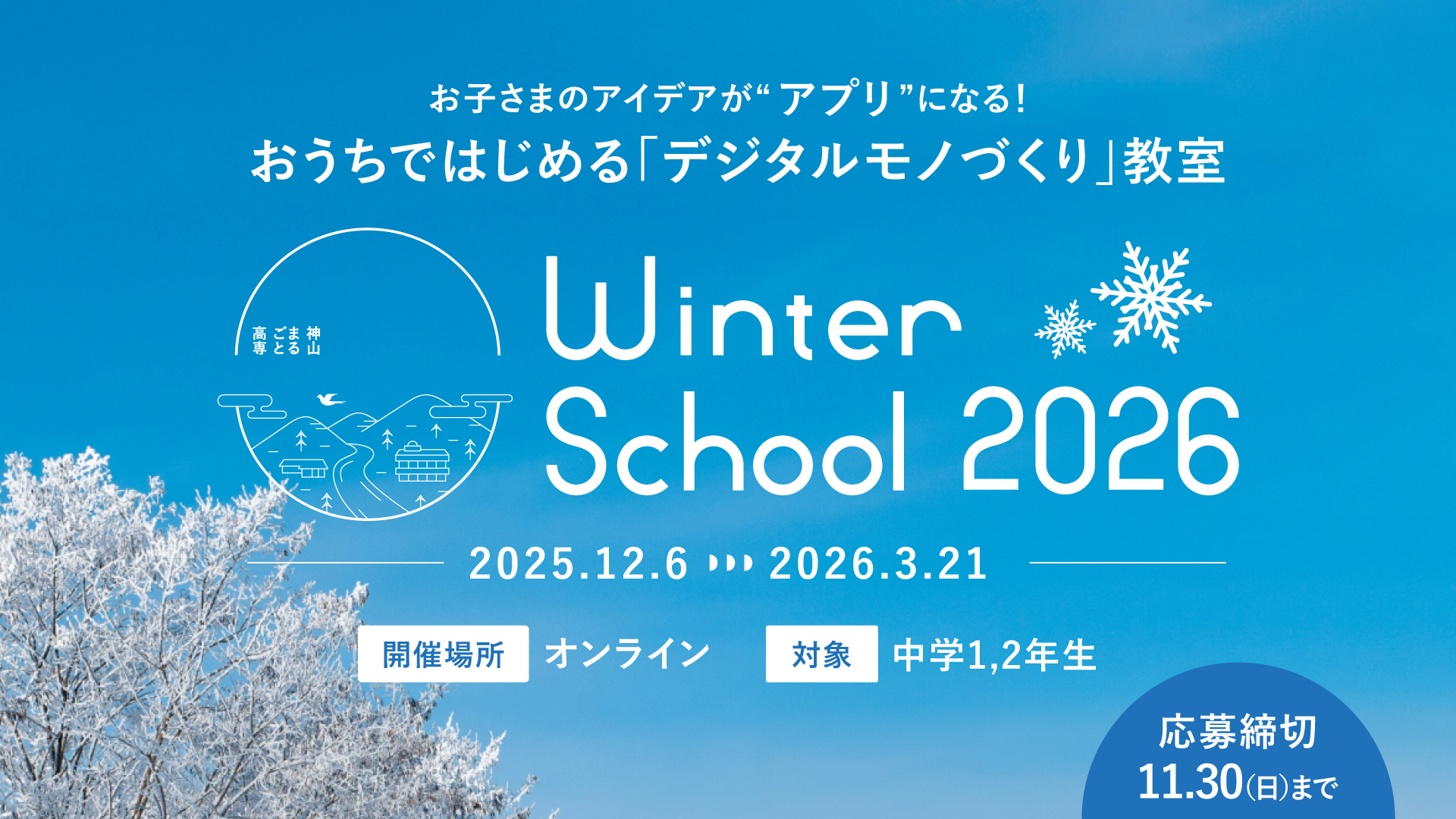 お家で始める「デジタルモノづくり」教室としてアプリを作れるウィンタースクールを特別開校しますのでぜひご参加ください。